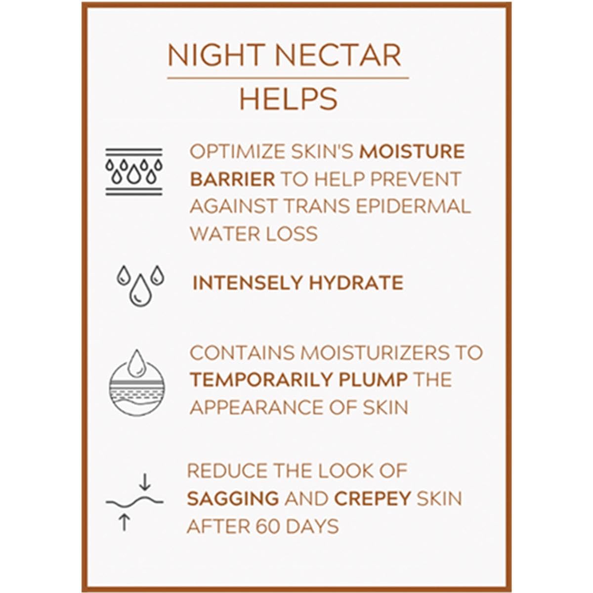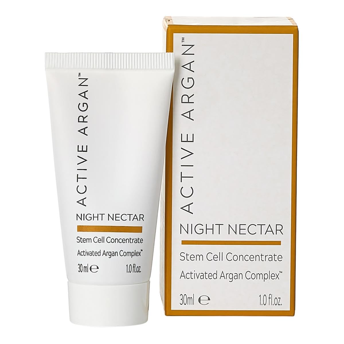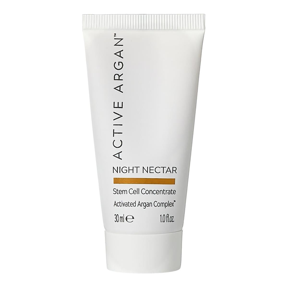- anti-aging benefits Stem Cell Concentrate intense moisture-barrier defense Leveraging whole Argan Tree attributes antioxidant-rich leaf extract protein-rich fruit isolates cold-pressed organic seed oils rich emollients, vitamins, and salicyclic acid Night Nectar visibly transform skin overnight