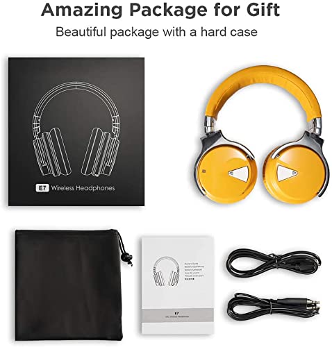 Active Noise Cancelling Bluetooth Wireless Over Ear Headphones with Mircophone, 30H Playtime,Deep Bass, Comfortable Protein Earpads, for Travel, Home, Office(Yellow)