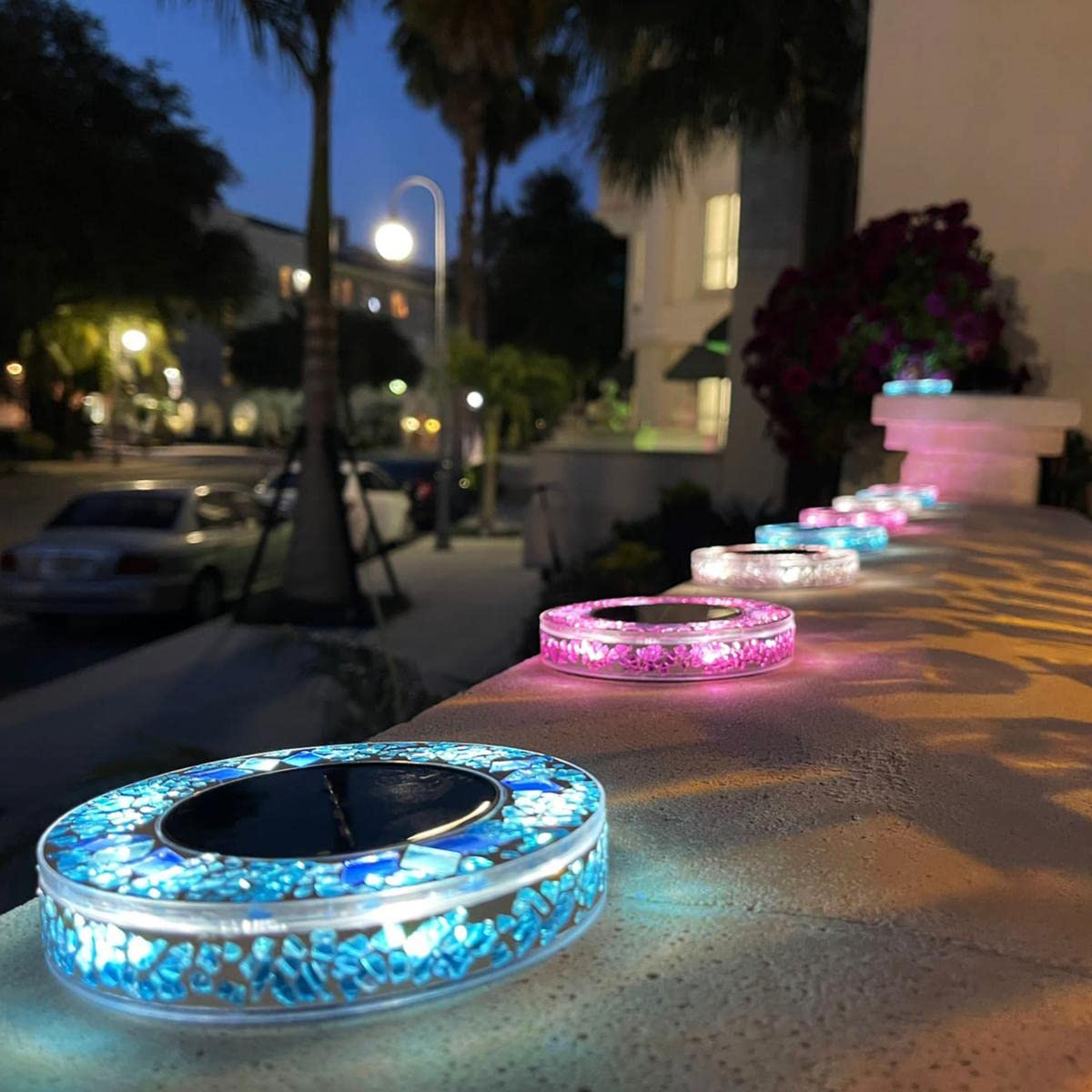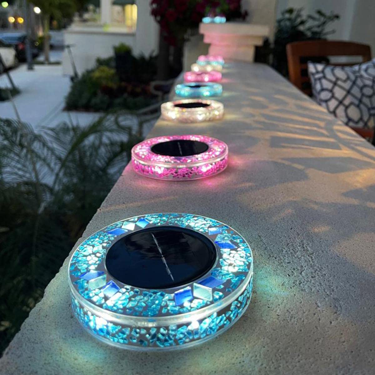 - INCLUDES: (6) Disk lights and (6) 2-piece stakes