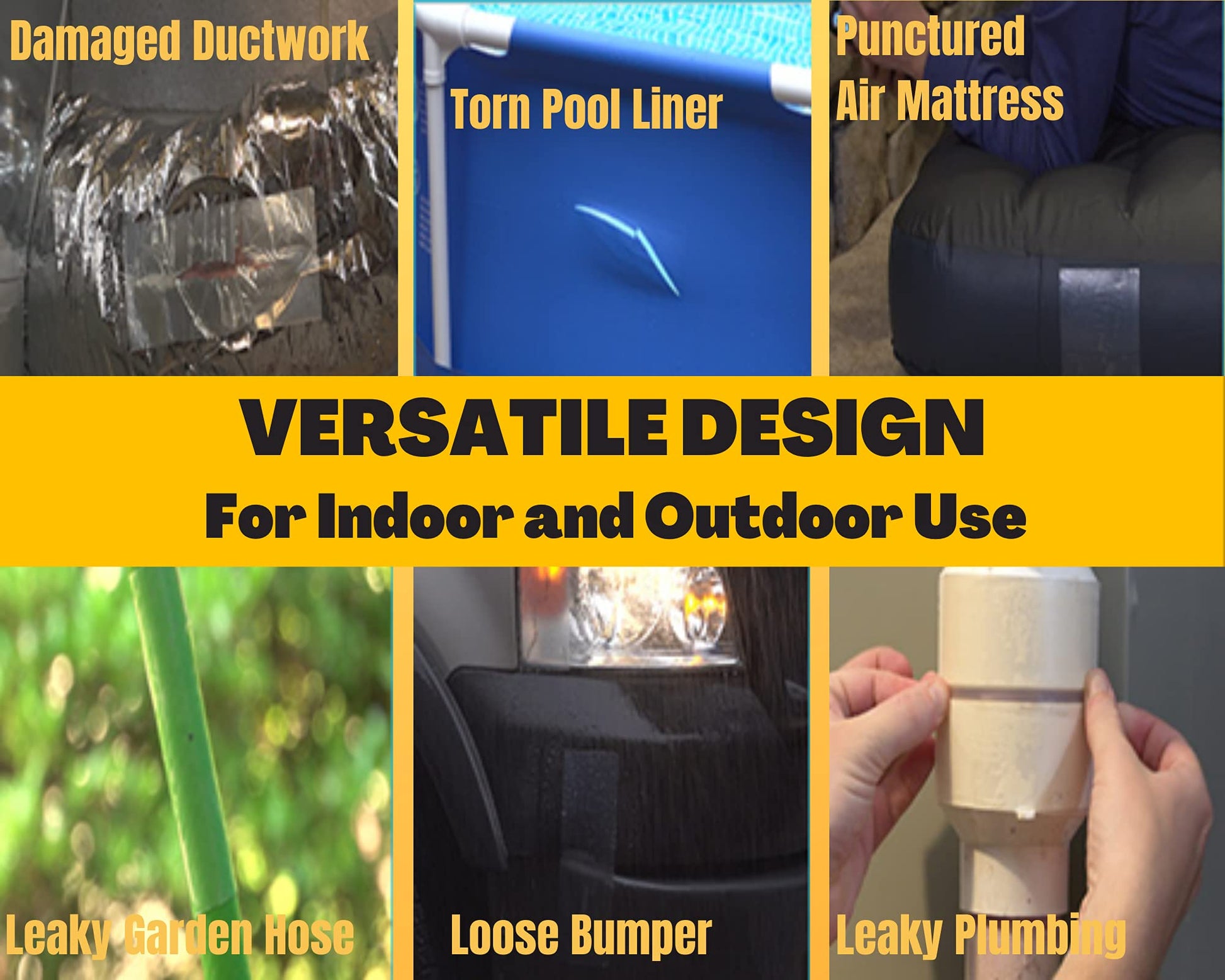 - DURABLE and WATER-PROOF: Alien Shield Tape instantly locks into place to repair tears, cracks, and leaks. It can stand up water-based elements such as rain, sleet, and snow. The ultra durable bond holds rain or shine. Great tape to stop leaks in the bathroom, kitchen, and swimming pool. You can also use this to patch the holes on your boats, camping tent, etc.