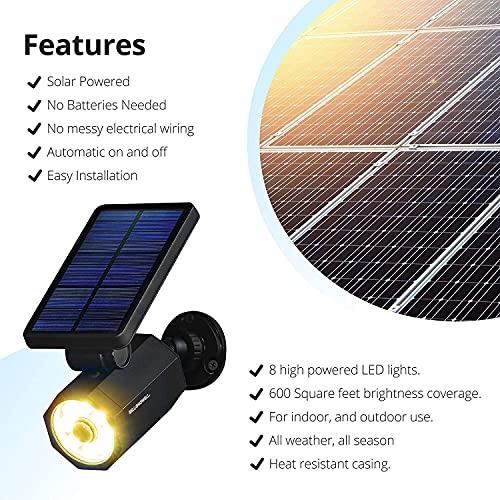 - SOLAR OUTDOOR LIGHTS – BellHowell Bionic Spotlight helps you save energy and money from your electric bills as it is solar powered. The solar panel absorbs and store energy from the sun all day and shines bright at night.