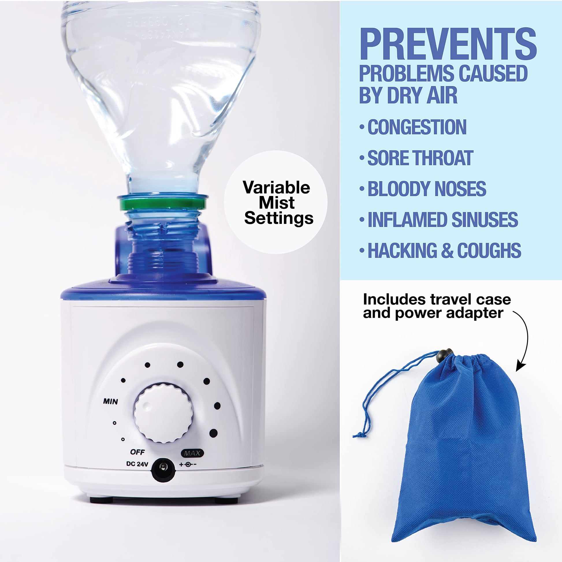 - Easy To Use: The Sonic Breathe is extremely easy to use, just place the mini humidifier wherever you’d like, insert any bottle of water, and enjoy up to 12 hours of humid air. To remove even the most stubborn congestion simply put menthol liquid inside the water bottle.