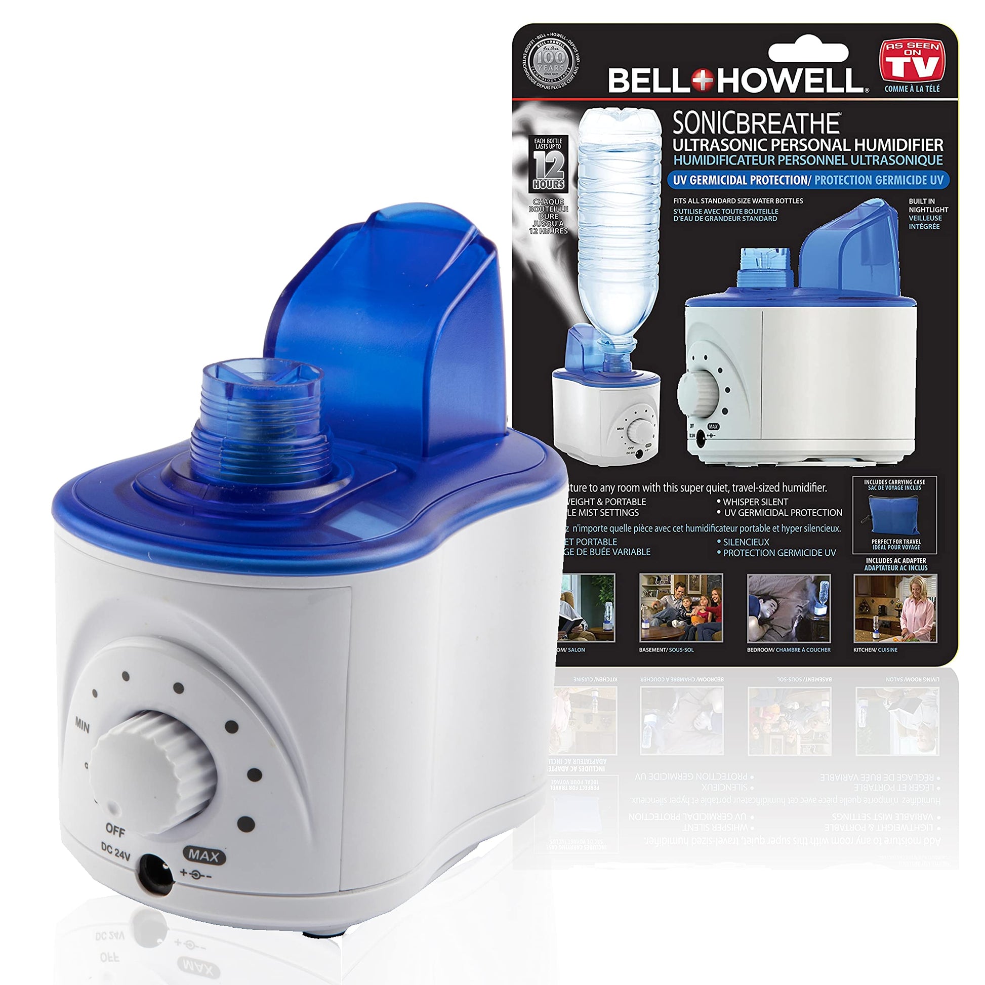 - Ultrasonic Portable Humidifier: The Bell+Howell portable humidifier provides instant humidity without any of the noise and headache in your office, bedroom, or car. The portable humidifier helps prevent any congestion, sore throat, bloody noses, inflamed sinuses, and hacking coughs caused from dry air!