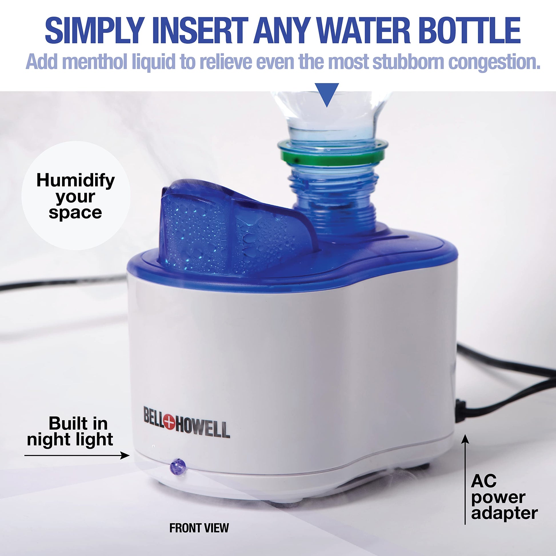 Bell+Howell Ultrasonic Personal Portable Humidifier-Cool Mist- lasts up to 12 hours per water bottle