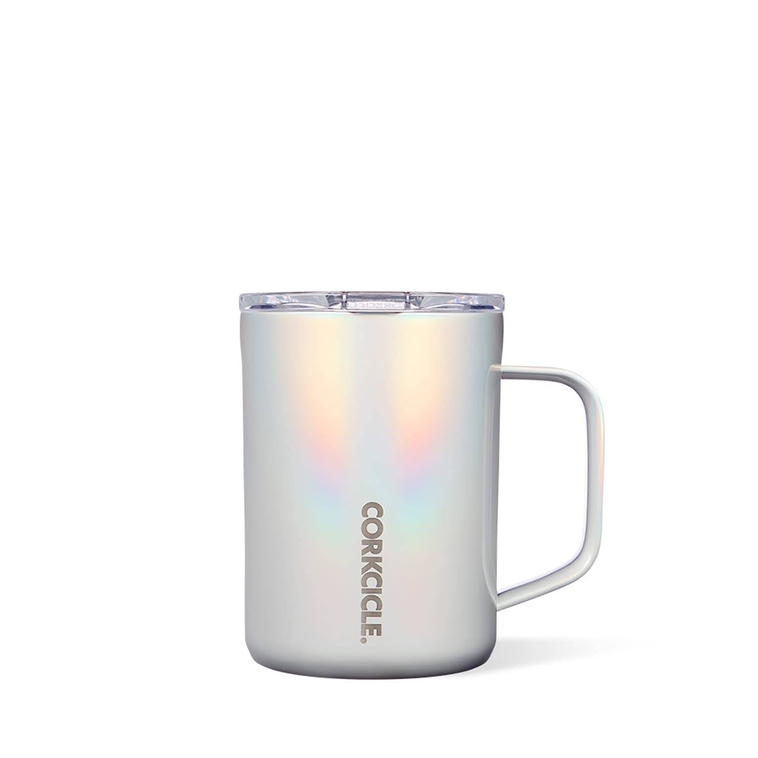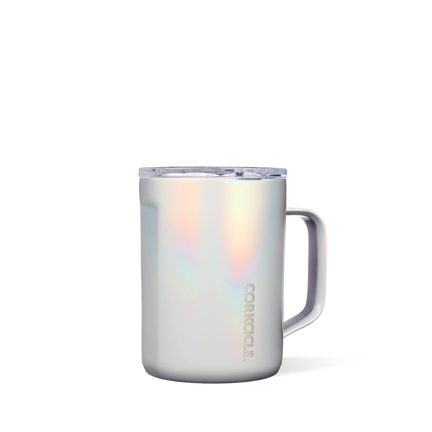 Corkcicle 16 Ounce Coffee Mug Triple Insulated Stainless Steel Cup with Clear Lid and Silicone Bottom for Hot Drinks, Prismatic