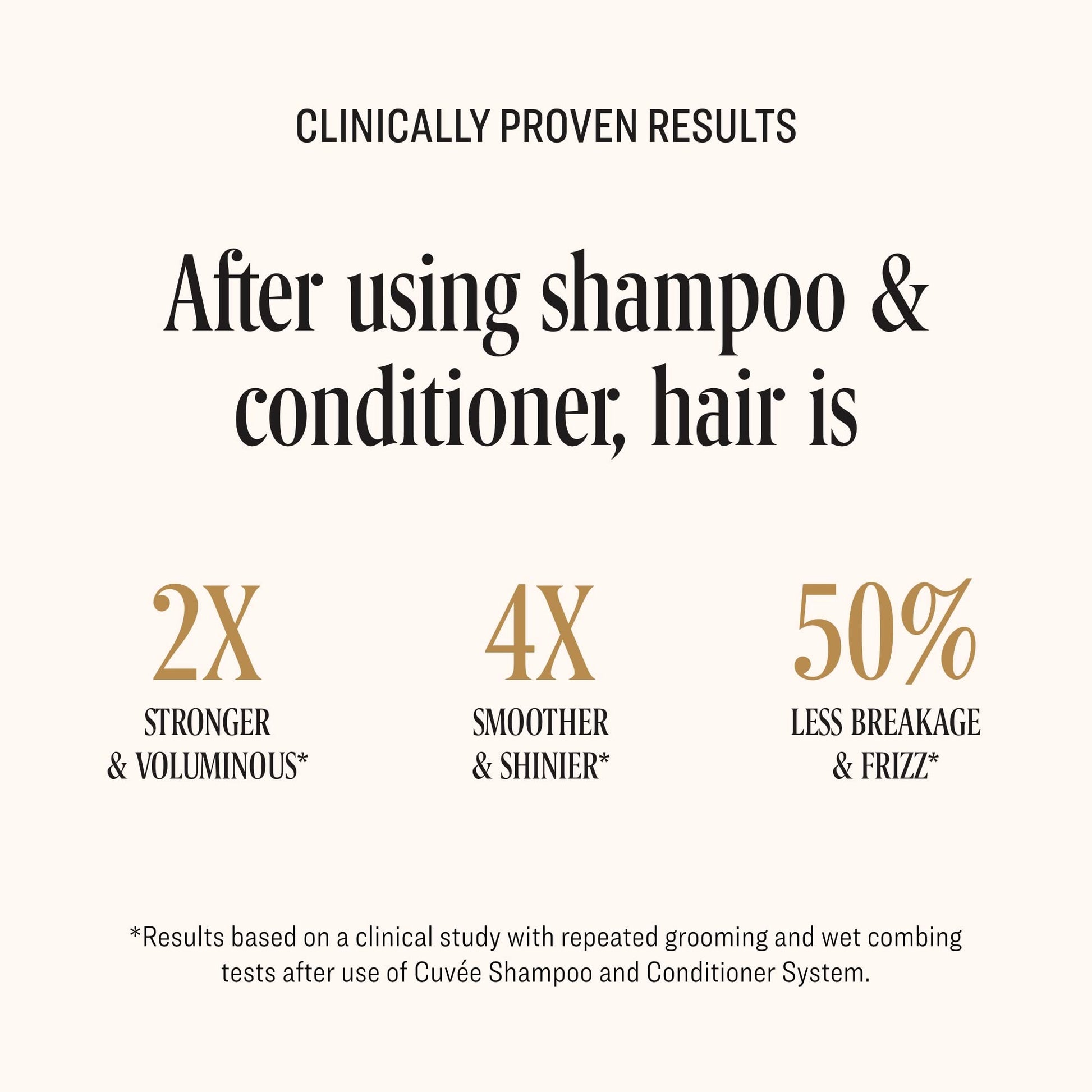- WHAT IT IS - Expect strength, softness, and shine every time you wash with the Champagne-infused Cuvee Shampoo. Hair feels stronger and softer & looks shiny and refreshed after every luxurious wash.