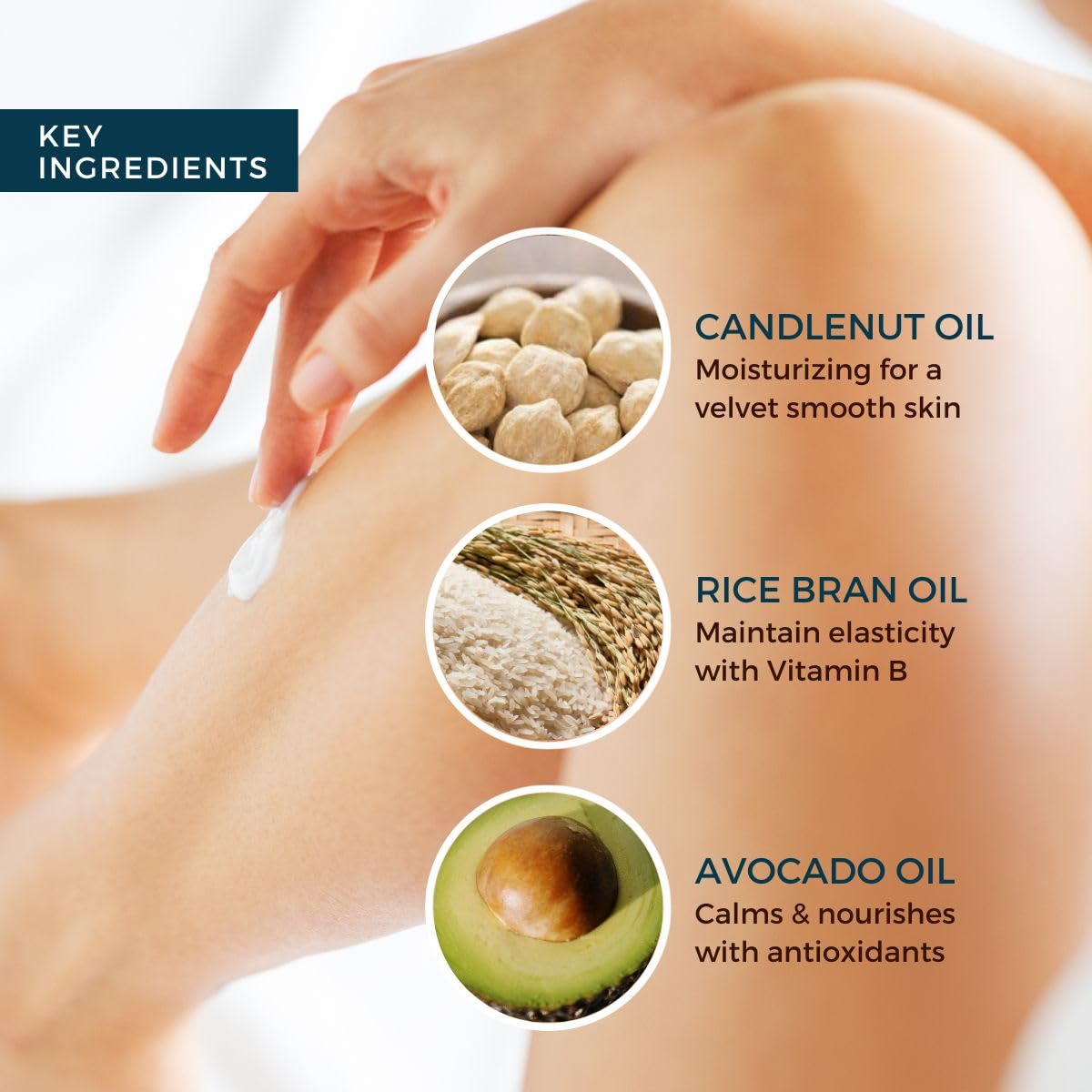- NATURAL INGREDIENTS RICH IN FATTY ACIDS. Contains nourishing ingredients such as candlenut oil, avocado oil, and illipe butter to improve skin’s elasticity and protect against harsh elements. Essential fatty acids help heal dry, chapped skin.