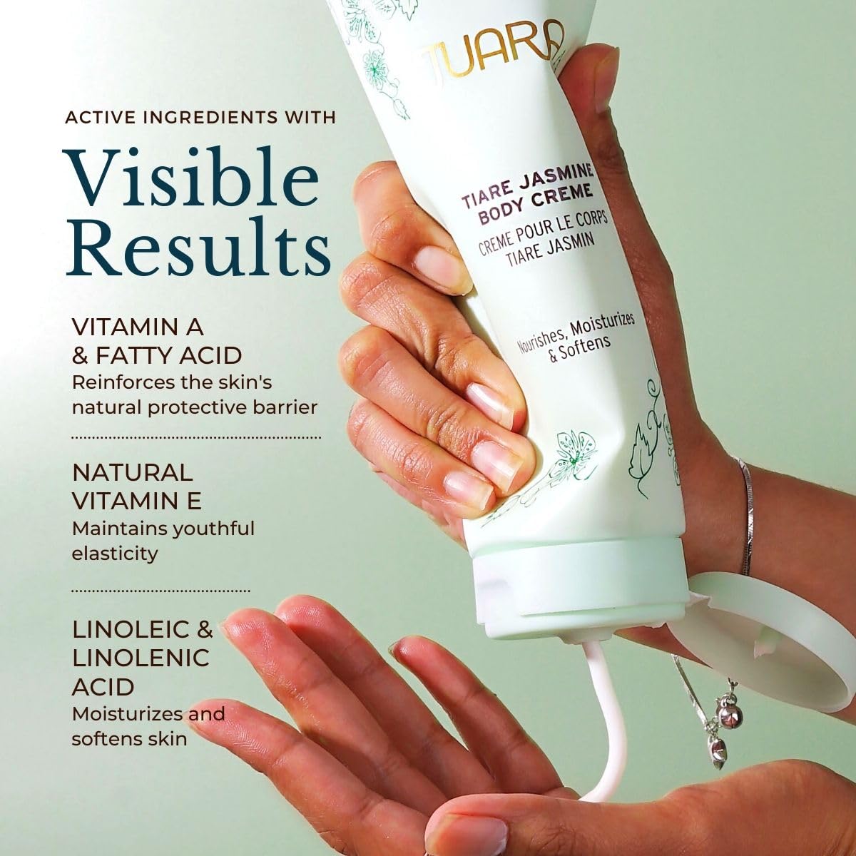 Juara - Tiare Jasmine Body Creme | Moisturizing Lotion | Dry Skin Hydration | Skin, Hands and Feet Cream | Soothing Skincare Balm | Cruelty Free, Paraben, Sulfate Free, Vegetarian | 8 oz