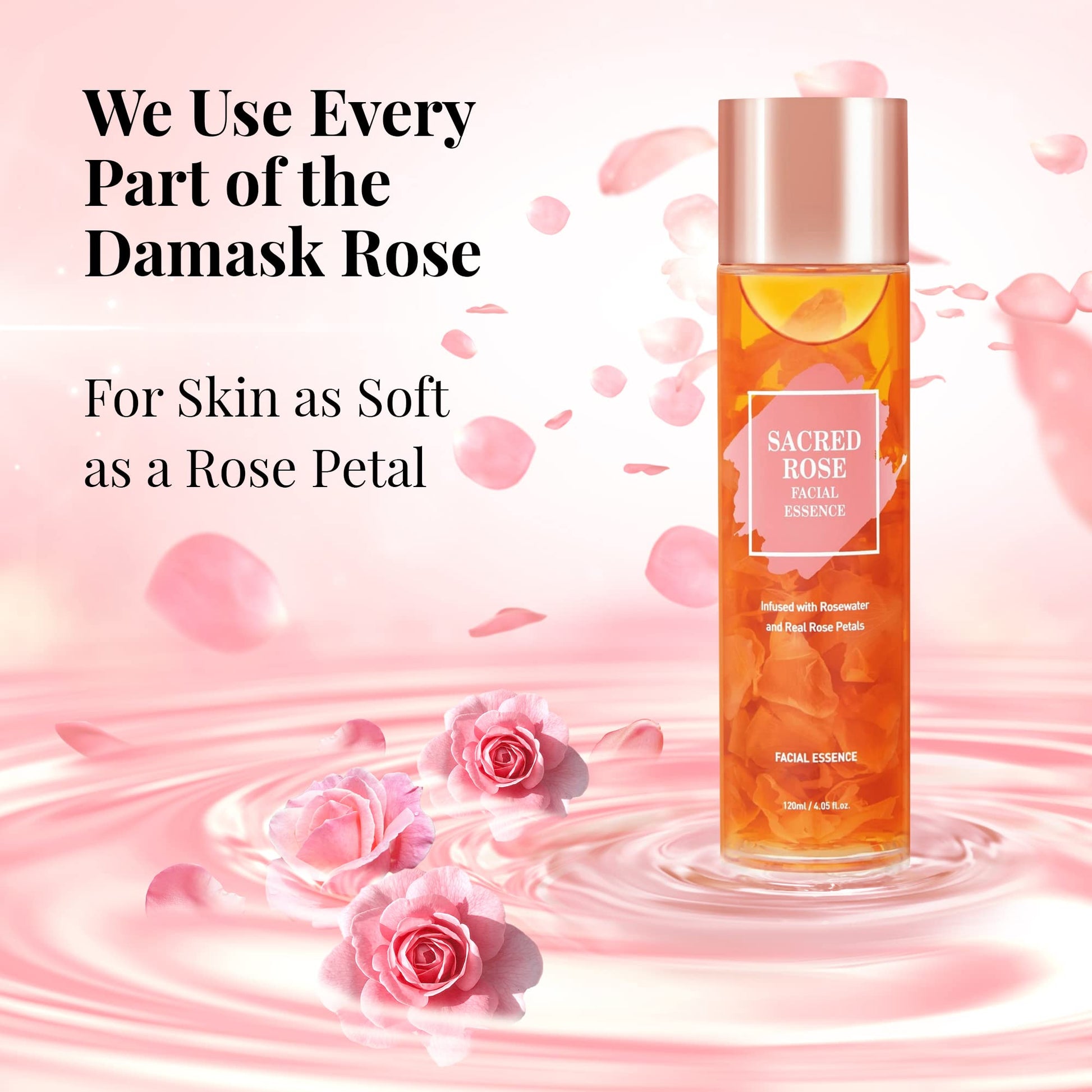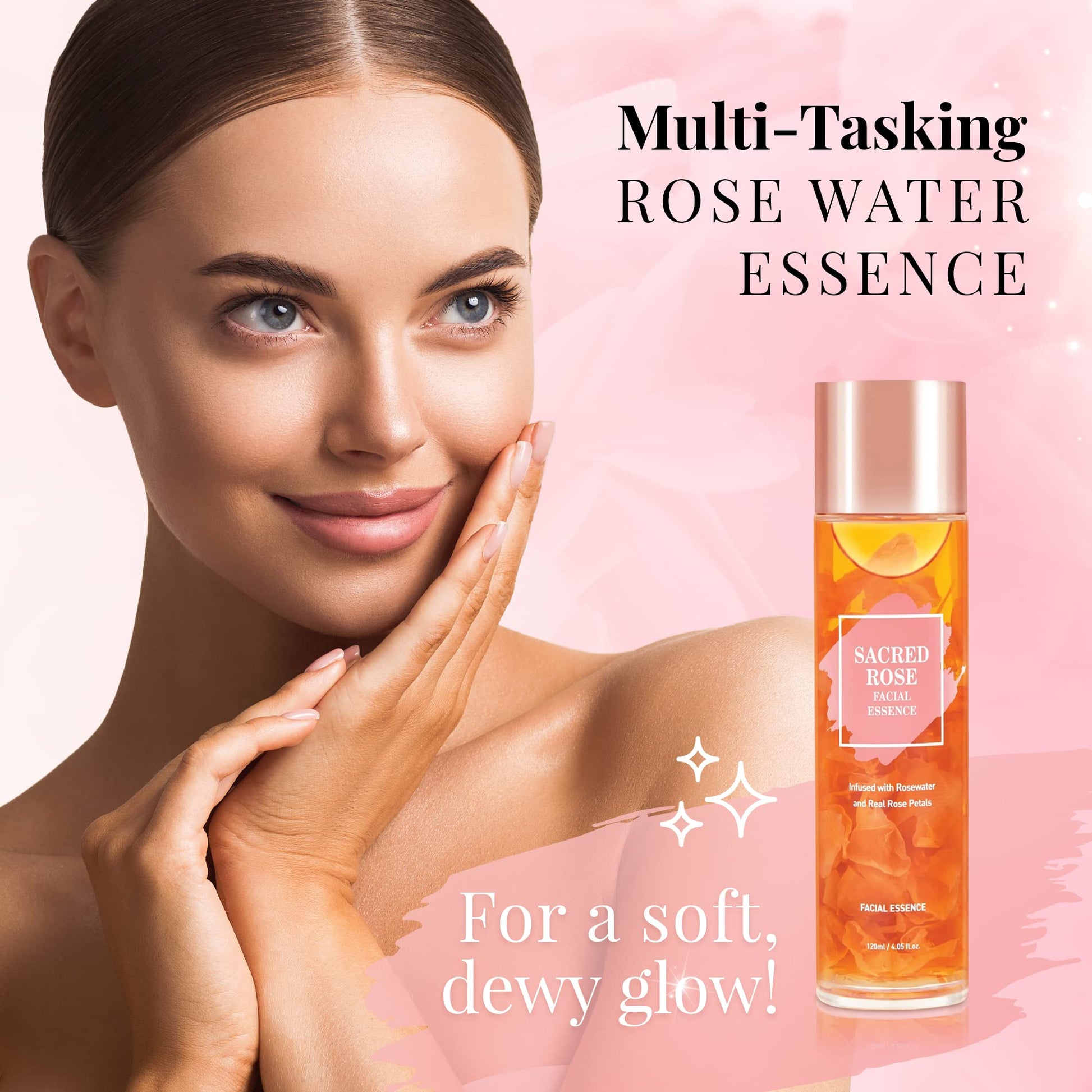 K BEAUTY SACRED ROSE FACIAL ESSENCE Face Brightening Serum Infused with Rose Water and 6 Types of Hyaluronic Acid Serum for Face Provides Intense Hydration for Fresh, Dewy Look