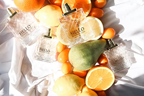 - A FRAGRANT FLORAL ROMANCE. Hello for her enters with a spicy citrus blend of Pear, Lemon, Grapefruit, and Pink Pepper, easing into a blooming heart of Jasmine and Tuberose, and drying to a rich, sensual base of Honey, Tonka, Ambrox, and Patchouli.