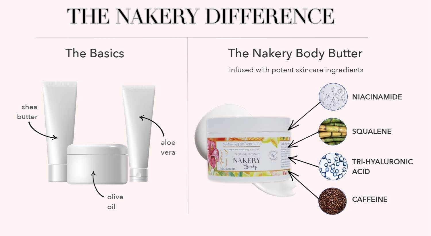 Nakery SkinToning Body Butter Crepe Smoothing + Repair Infused with Niacinamide, Caffeine, Tri-Hyaluronic Acid (Social Butterfly)