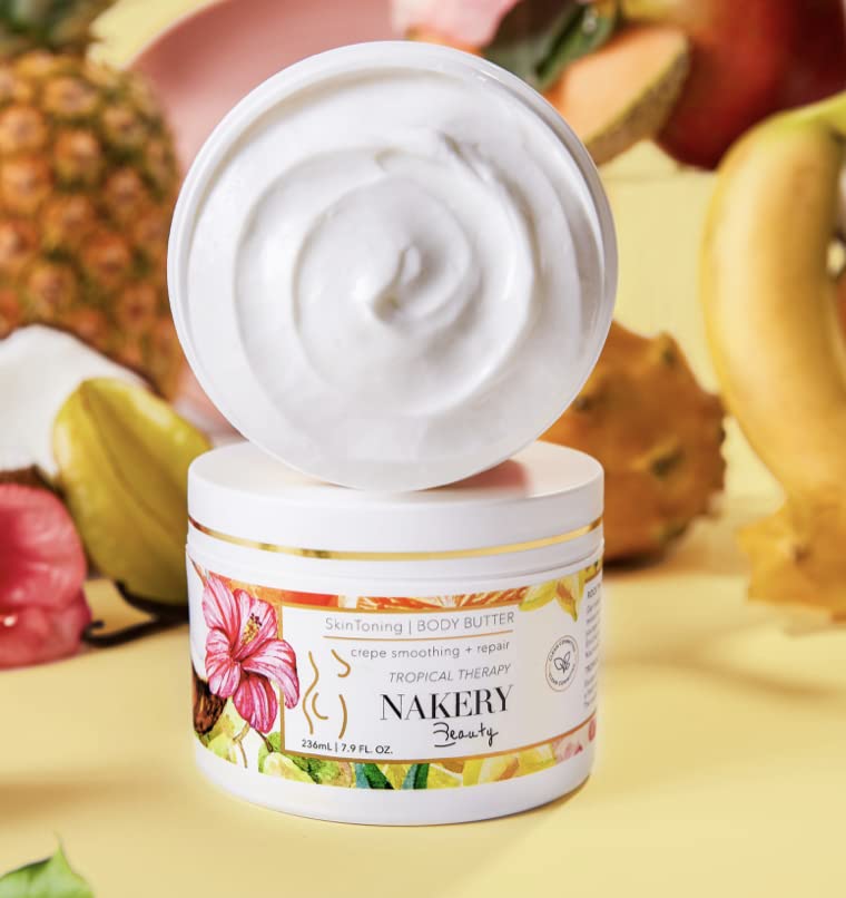 Nakery SkinToning Body Butter Crepe Smoothing + Repair Infused with Niacinamide, Caffeine, Tri-Hyaluronic Acid (Tropical Therapy)