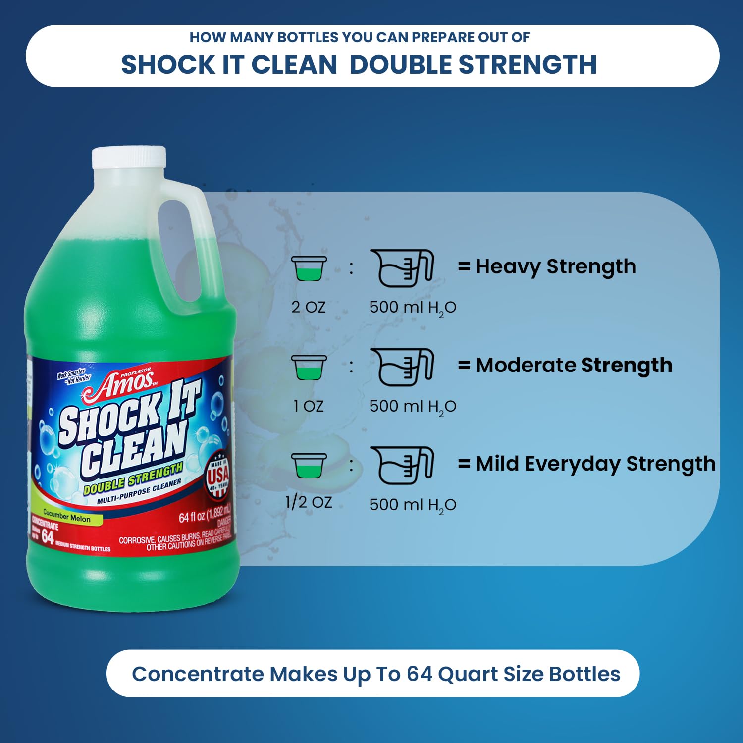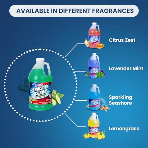 - UNBEATABLE VALUE AND ULTRA CONCENTRATED CLEANING POWER IN ONE BOTTLE! Transform your cleaning routine with Shock It Clean super-concentrated formula. One bottle yields up to 64 bottles of powerful cleaning solution, ensuring you save money without compromising on effectiveness. Every drop counts towards sparkling cleanliness throughout your home.