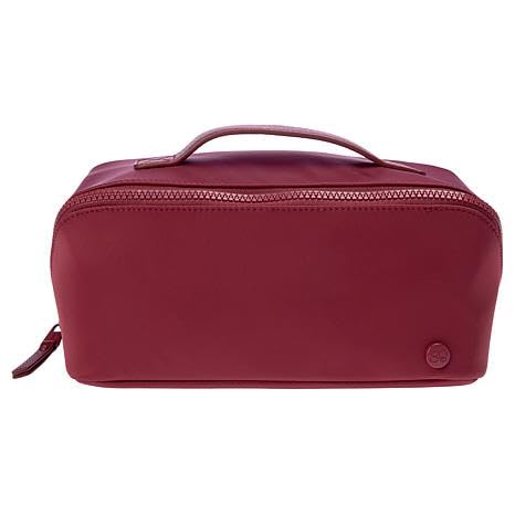 - Front features Samantha Brown round logo plaque Interior features signature lining Interior features a center zip pocket The back wall features 2 slip pockets with elastic The front wall features 1 large slip pocket with a center tab