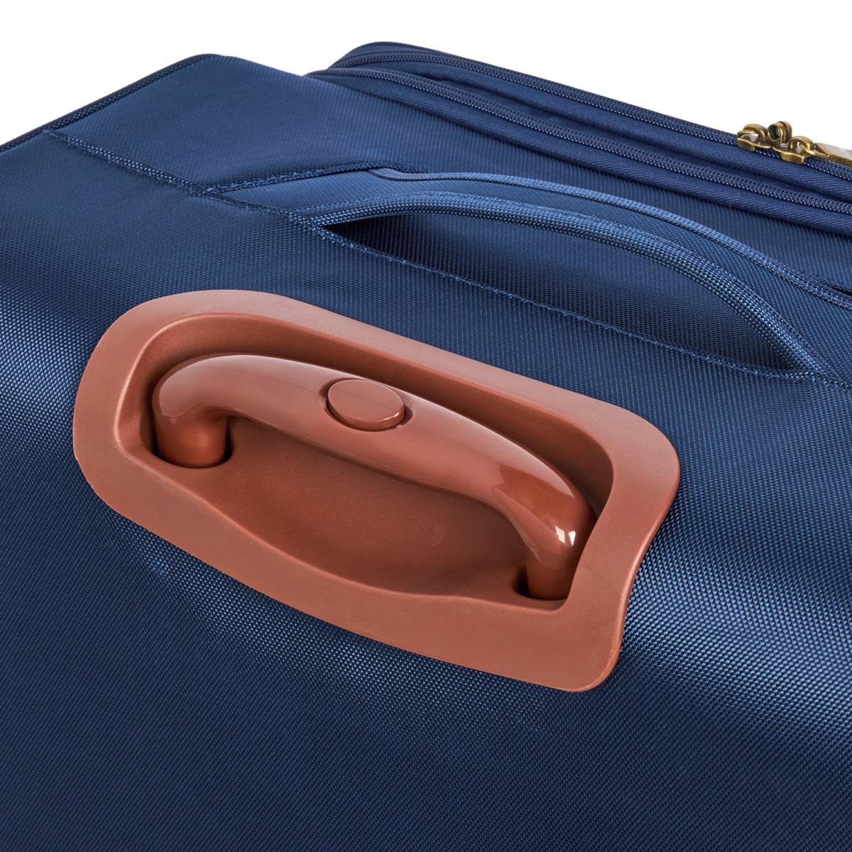 - Push button locking handle The push button locking telescoping handle makes pushing or pulling your bag easy, no more collapsing handle
