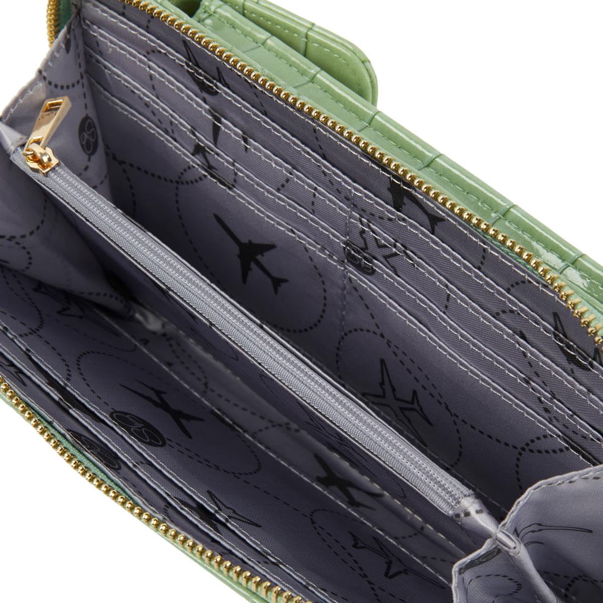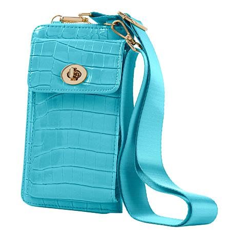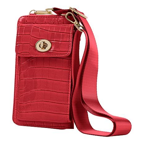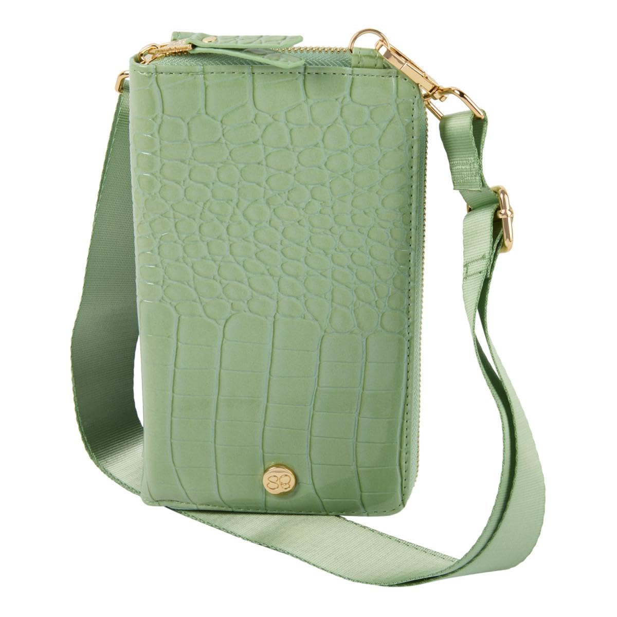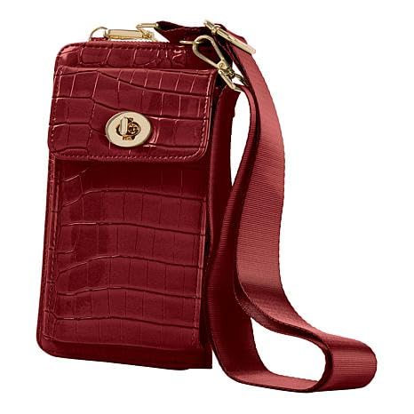 - More Features Durable Croco Embossed PU (man made material) Closure type - Metal zipper with SB metal puller Hardware: Shiny Gold Interior details - Samantha Brown signature lining Large travel wallet Remove the crossbody webbing strap and use as your wallet