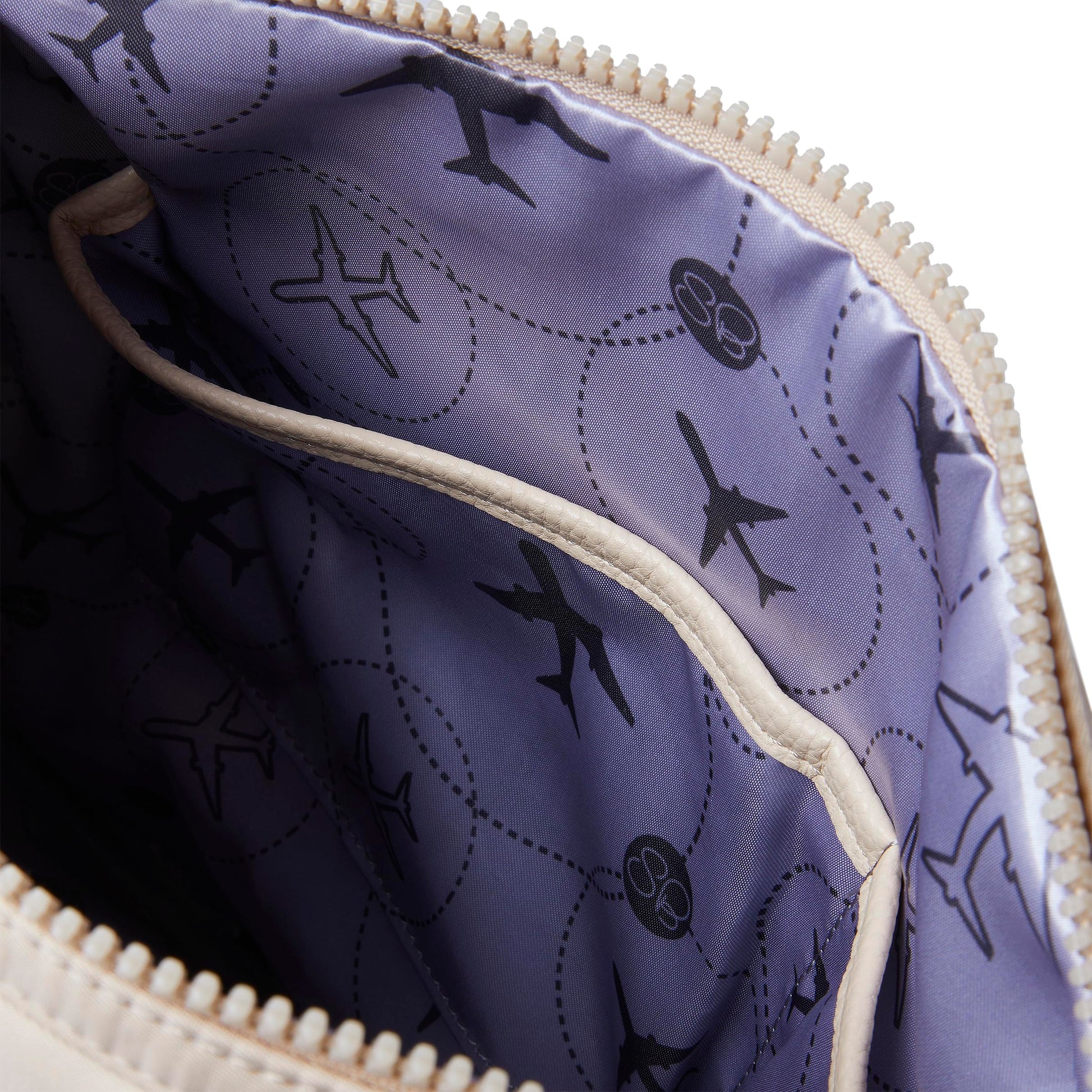 - Front features two large zip pockets Side features two small zip pockets Back features a zip pocket that unzips to create a trolley sleeve