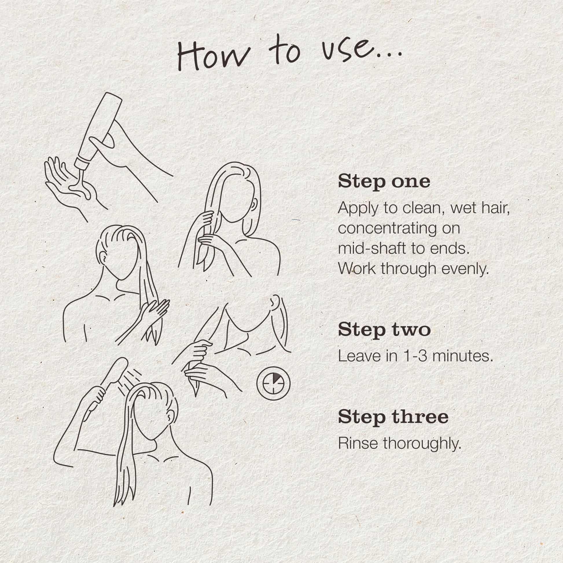 - EASY TO USE: Apply conditioner to clean, wet hair, concentrating on mid-shaft to ends. Work through evenly. Leave in 1-3 minutes, then rinse thoroughly. For a little extra TLC, apply to dry hair from mid-shaft to ends, wait 1-3 minutes, then rinse.