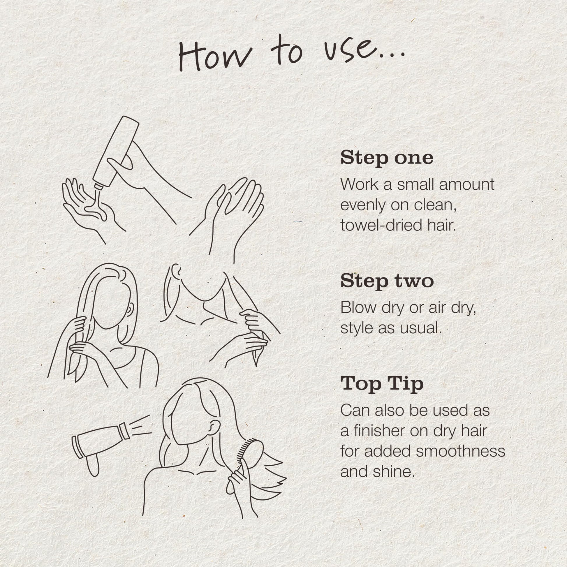 - EASY TO USE: Work a small amount evenly to clean, towel-dried hair. Blow dry or air dry, style as usual. Can also be used as a finisher on dry hair for added perfection.