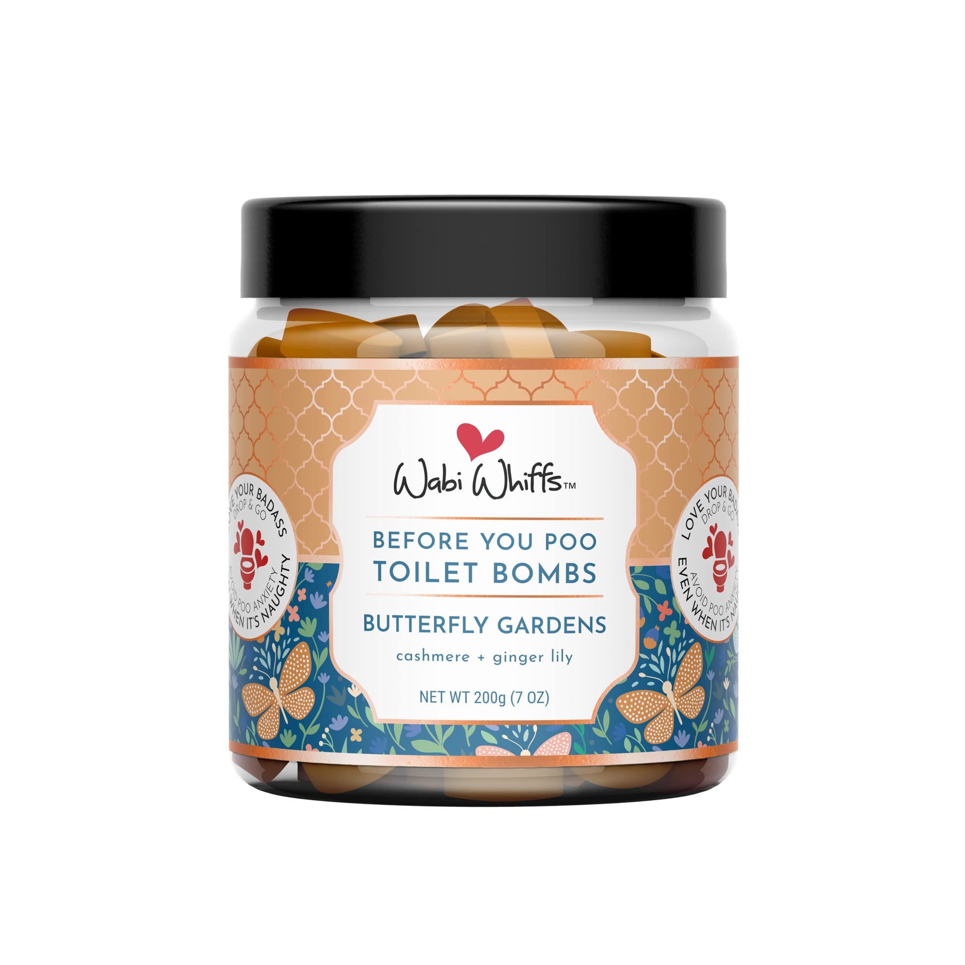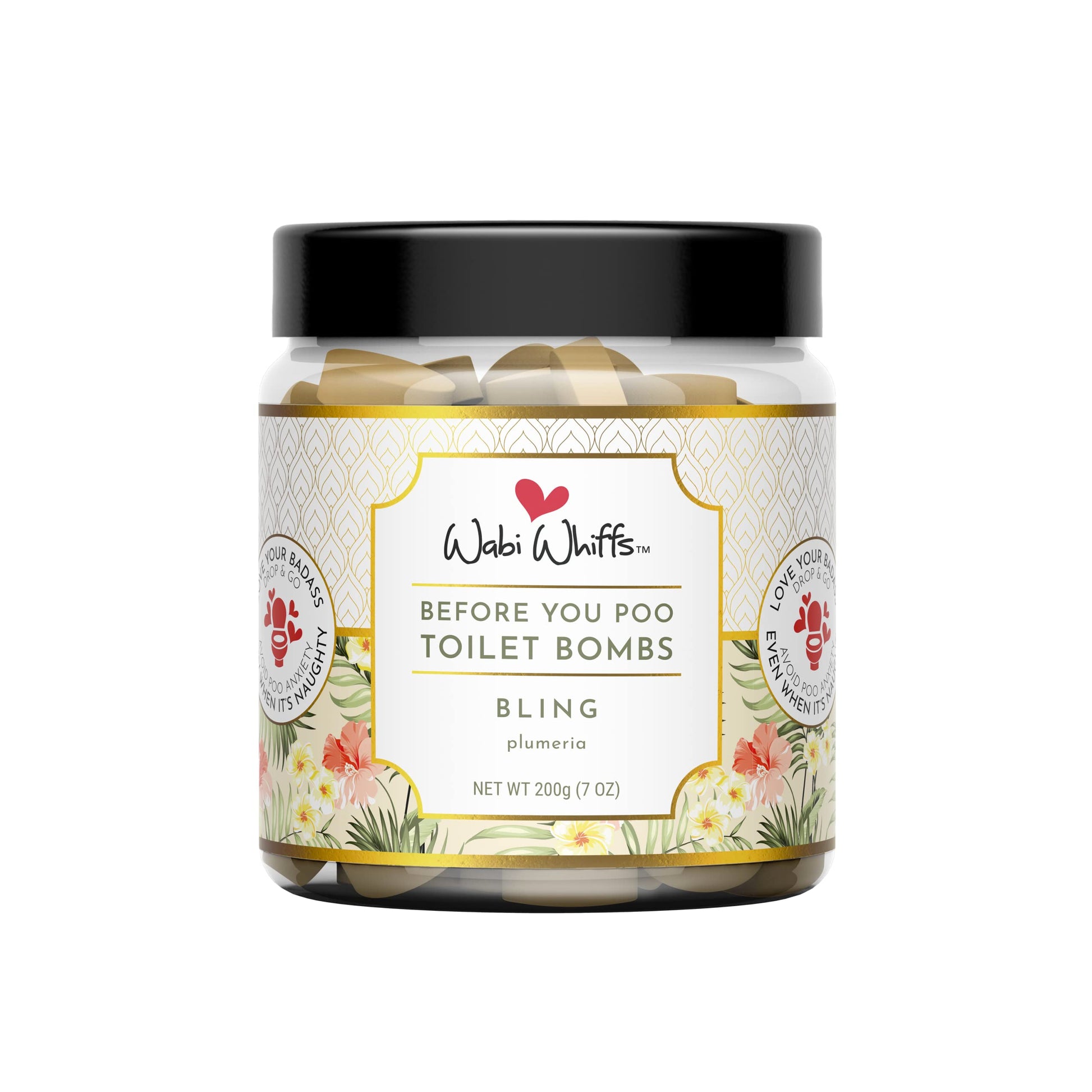 Be the Boss of Your No.2. Don't hide these stylish Toilet Love Bombs! Keep them handy and eliminate poo odor instantly. Drop 1-2 fizzing bombs (no judging) into the toilet. An effervescing fragrant film forms on the toilet water trapping and eliminating odors. Just Drop, Go and Flush when done. Approximately 60 poos Contains cosmetic non-staining color, natural essential oils, biodegradable glitter, citric acid, and baking soda Discreet, convenient and works instantly